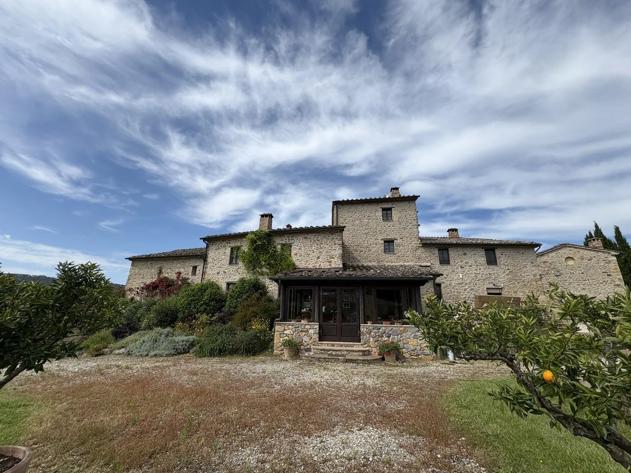 The property is 120 acres of land that has an ancient Etruscan road running down to the farm. The first stone was laid in 1206, and originally it was a small village, until it was abandoned and sat in ruin for hundreds of years. It was then purchased and restored with all original historical considerations, and is unique in that it sits adjacent to thousands of acres of a nature preserve, so that every morning you are greeted by untouched natural Tuscan wilderness.
