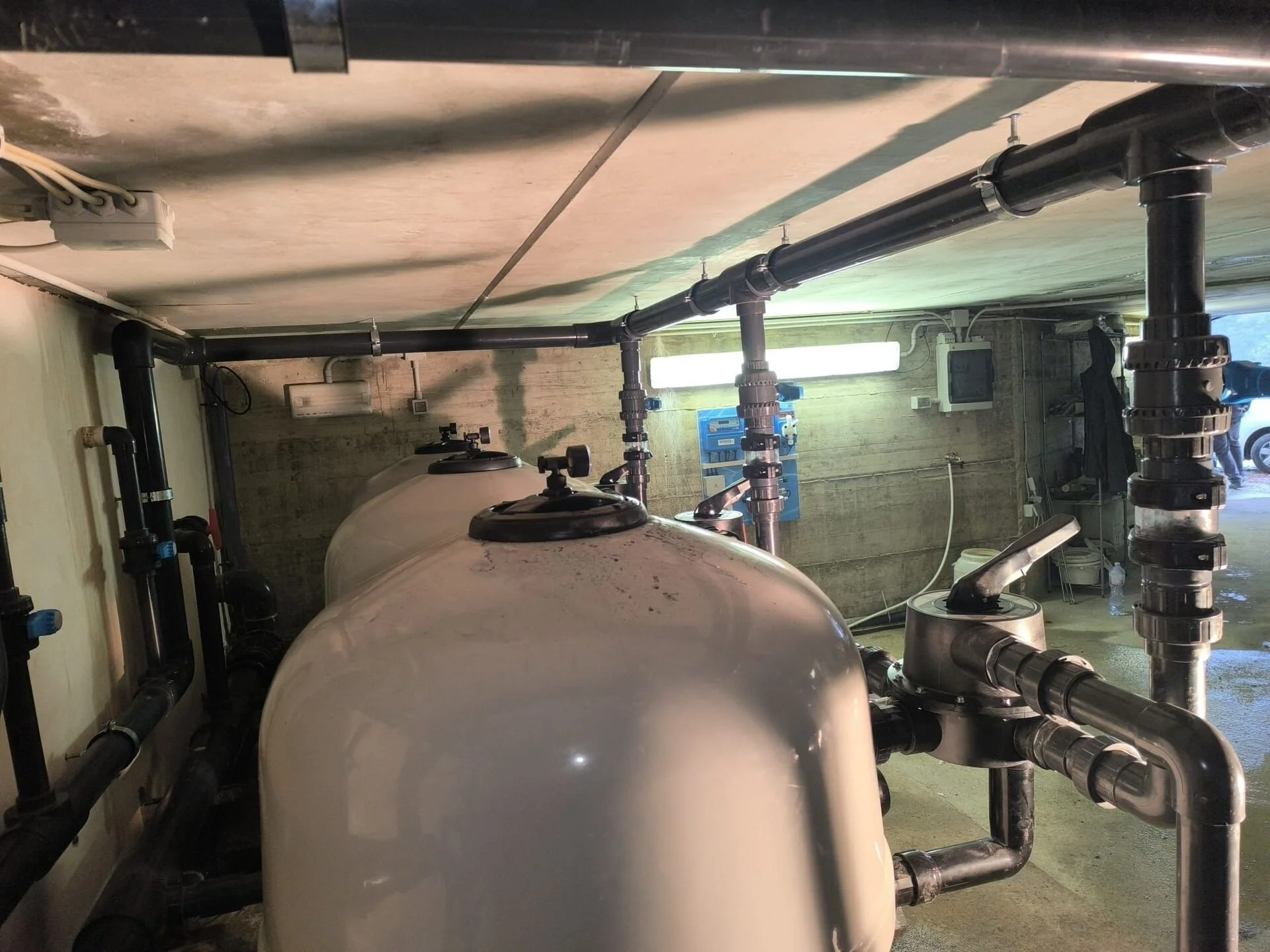Our other contractor, Pool Group, has been working at removing all the old pool technical equipment and replacing with our new expanded filter systems that circulates the water every 3 hours and removes chlorine automatically when backwashing.