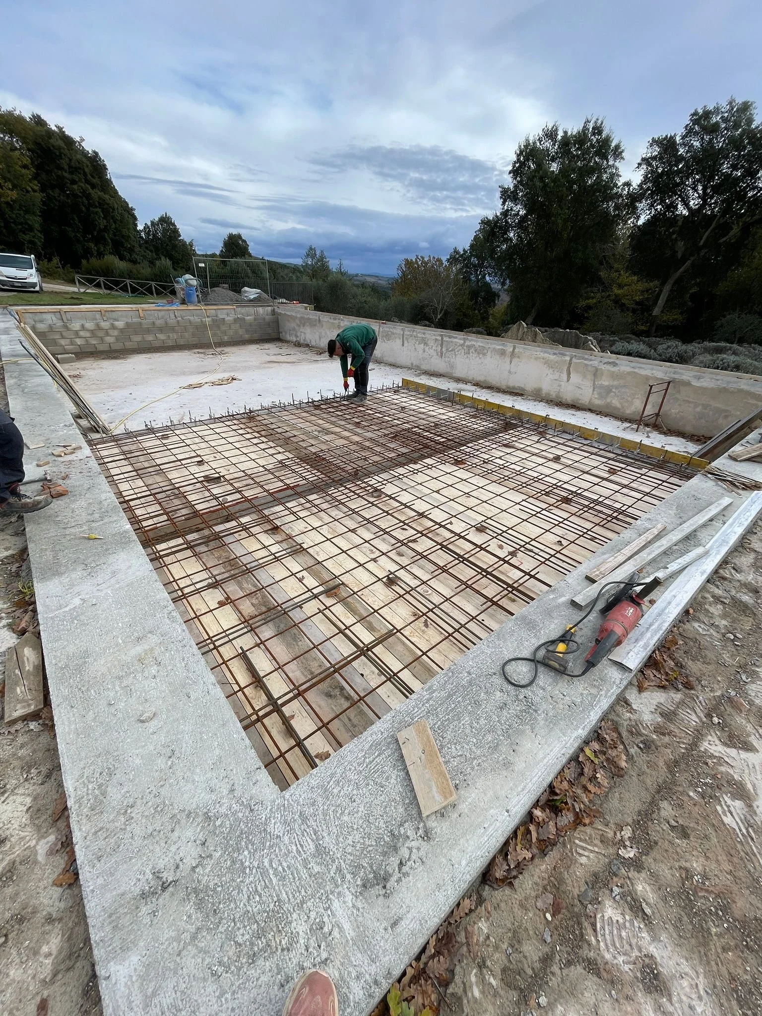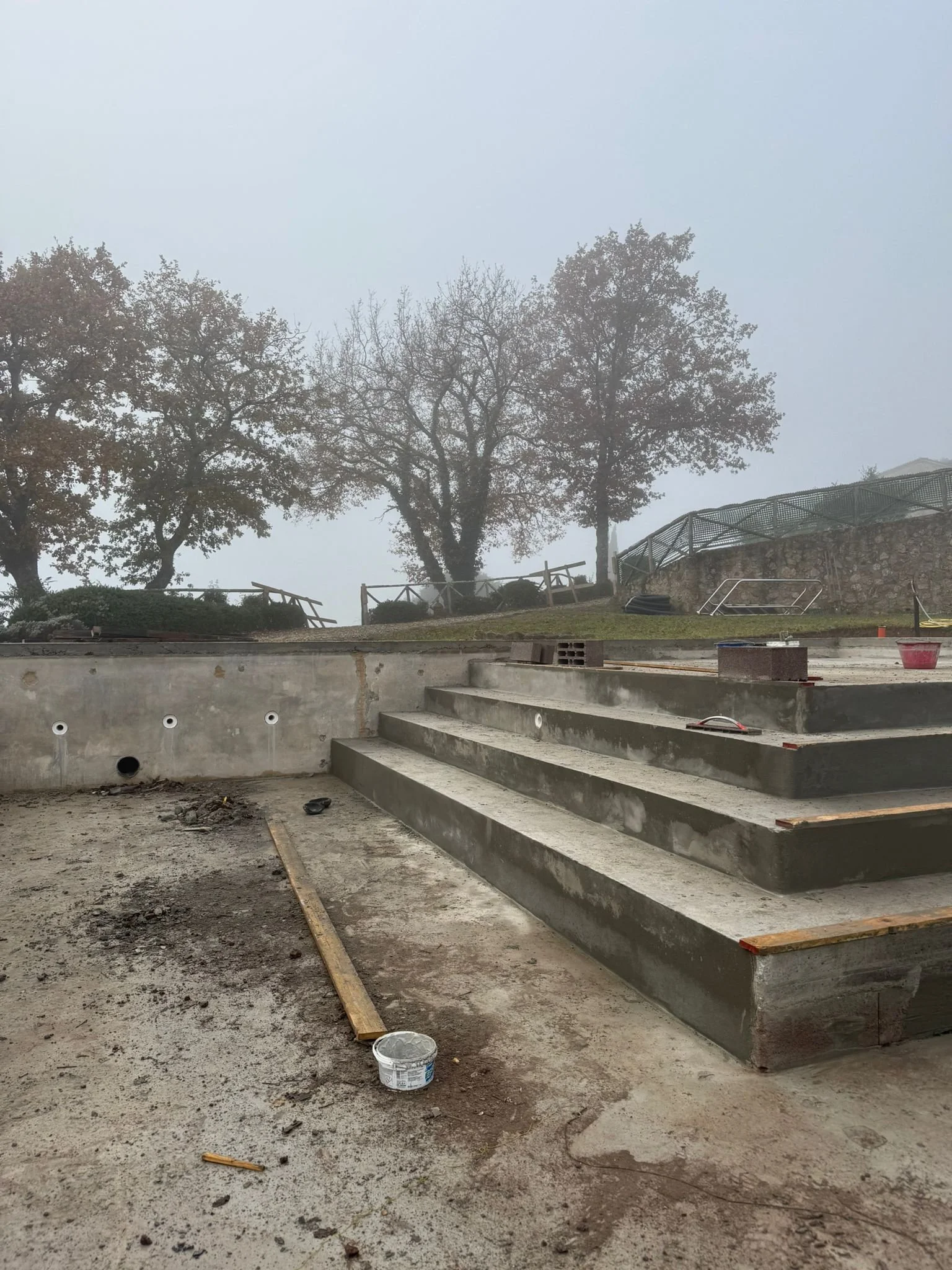 OurToscana searched and compiled a short list of general contractors, checked references and managed a competitive bidding process from which we selected our first contractor for the major works, Spinelli, who has started on the pool rebuild. They just finished adding the tanning shelf and new integrated steps into the pool.